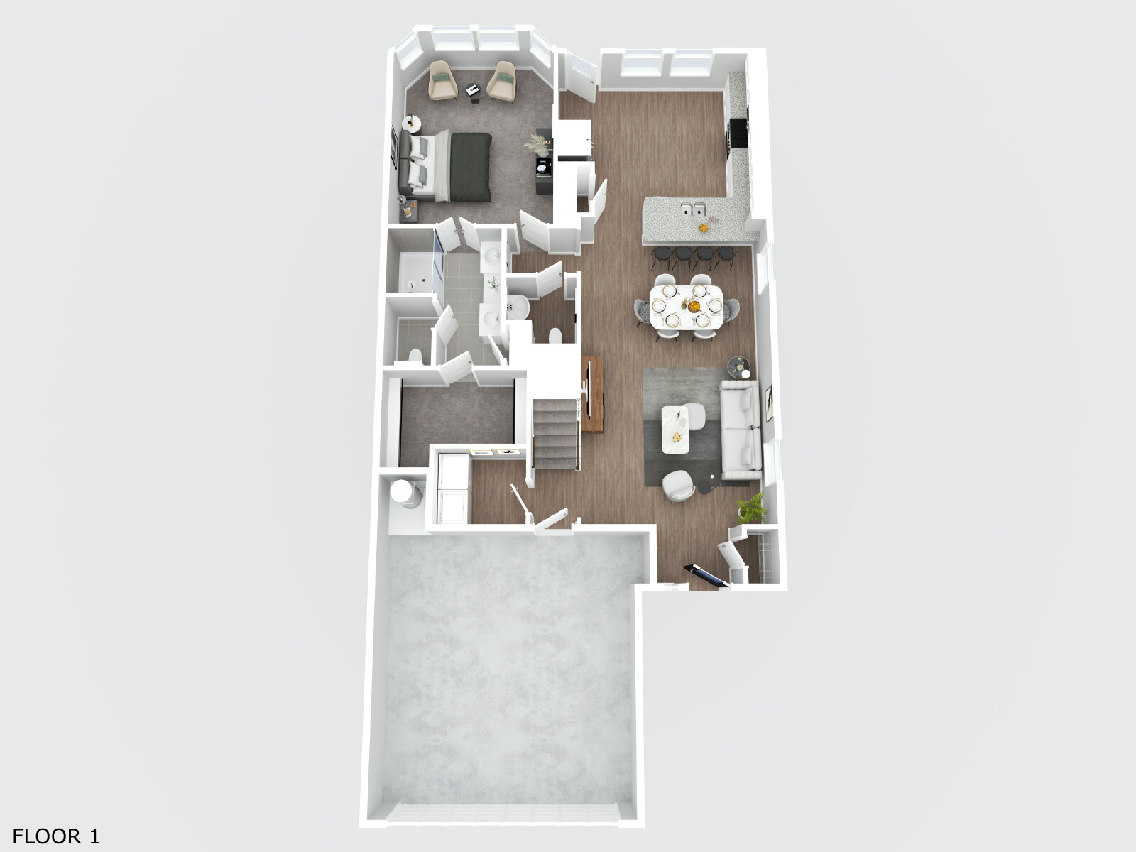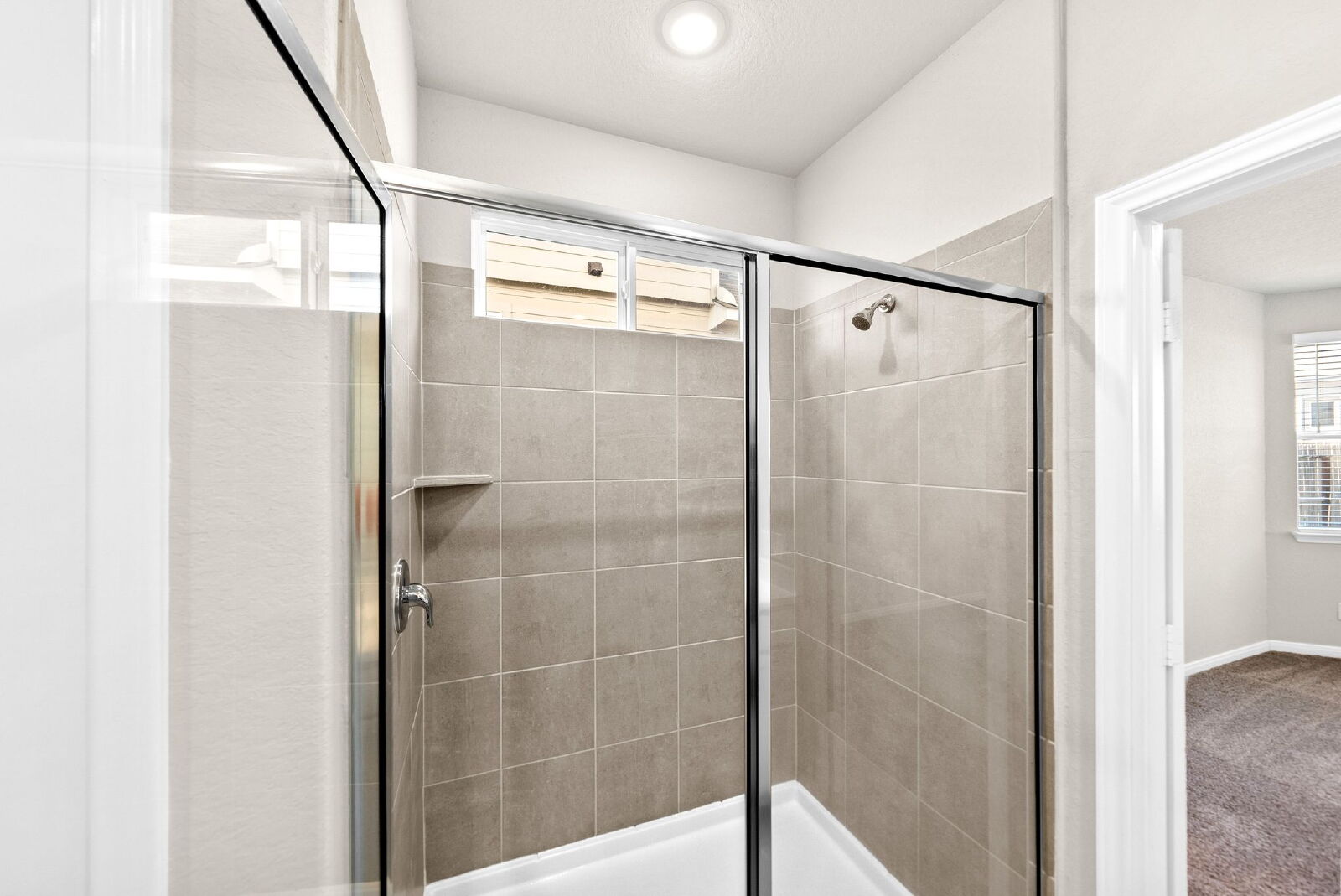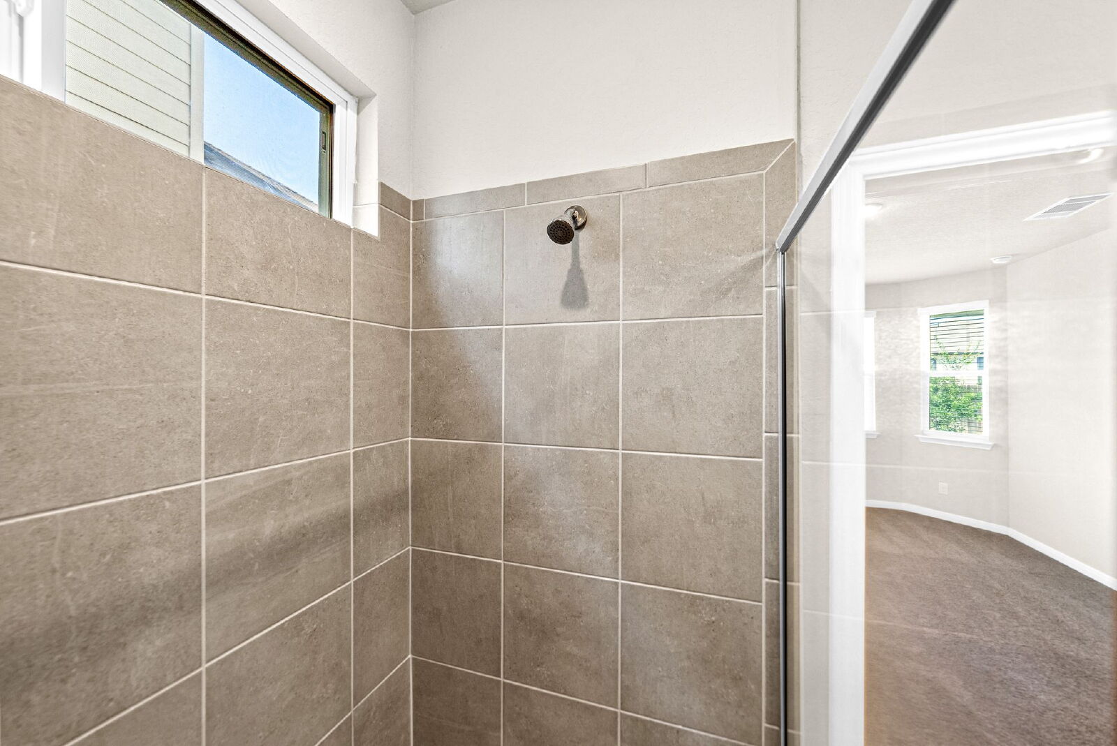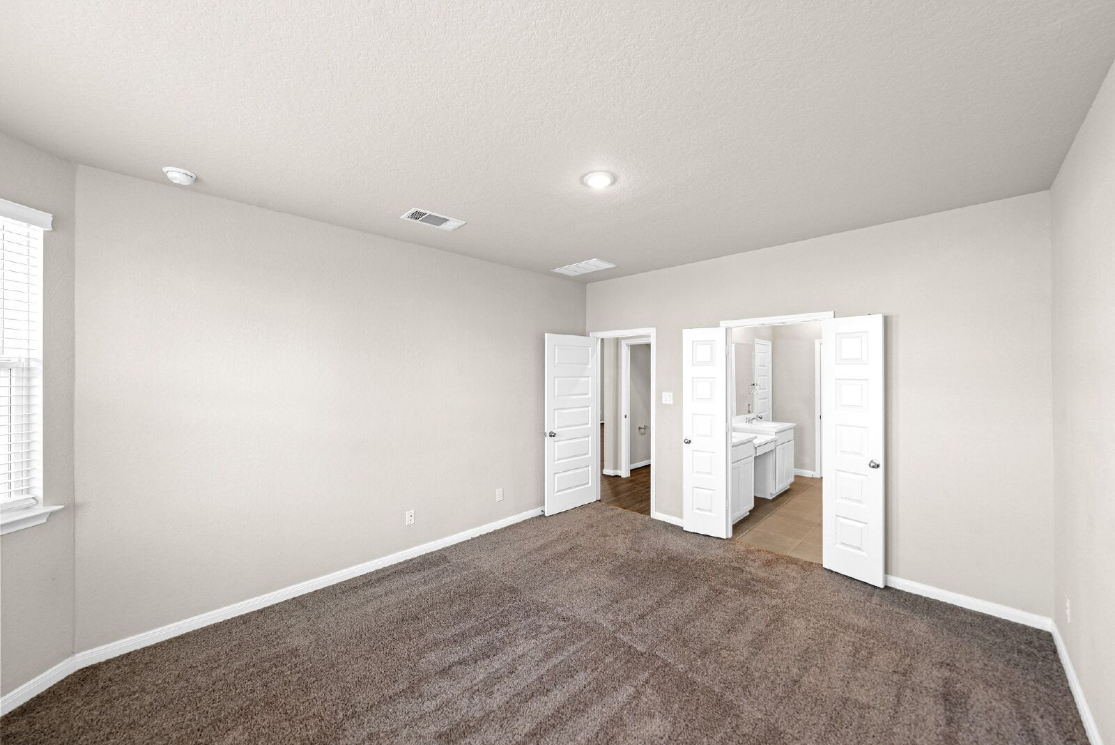 The primary bedroom suite is located on the main floor, offering a quiet retreat at the end of the day. The attached bathroom features a double vanity, a spacious walk-in shower, and a large walk-in closet that simplifies your morning routine and keeps life organized.