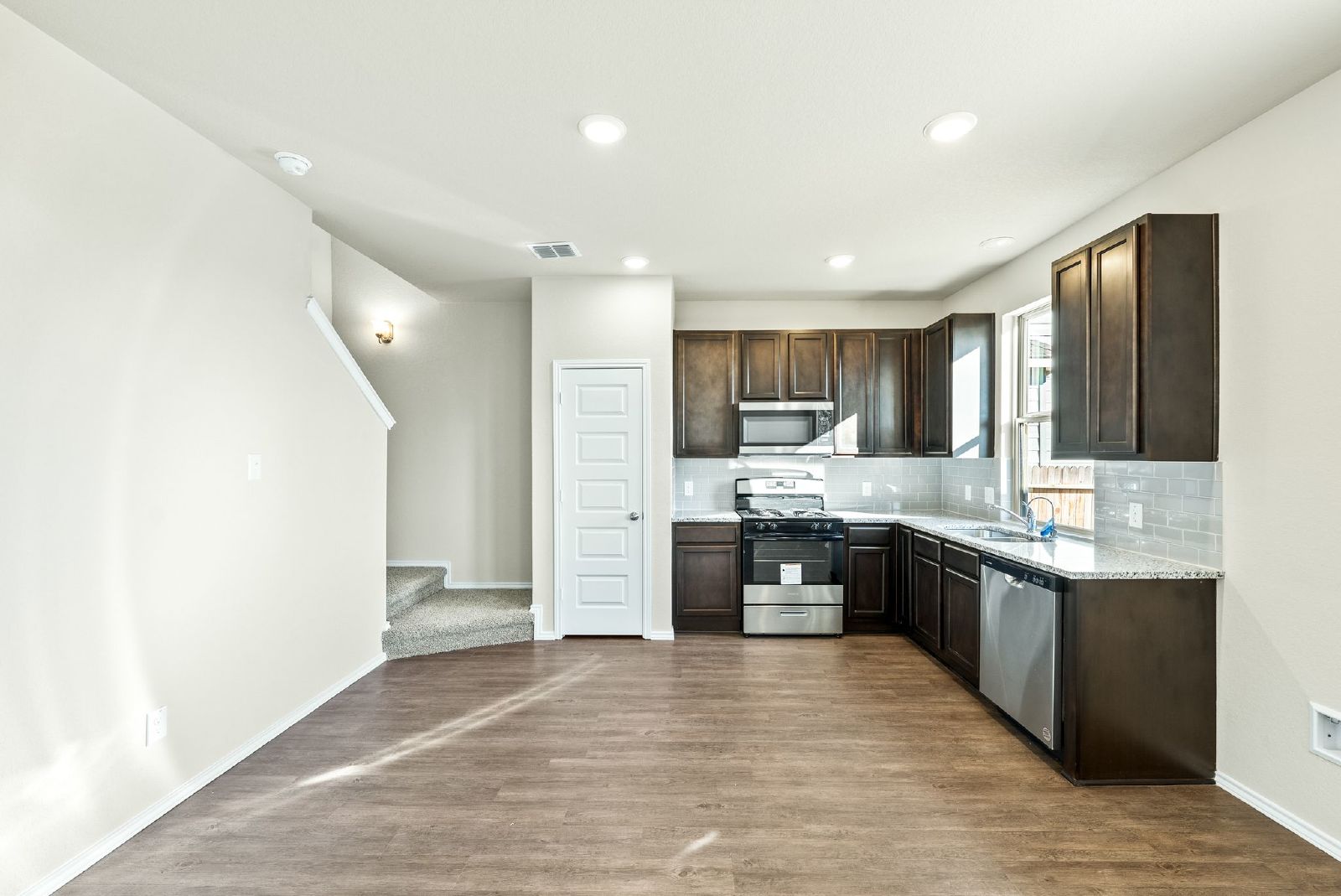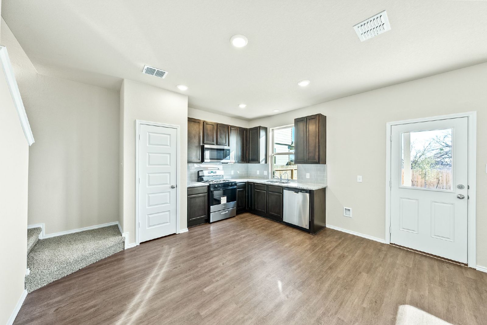 Welcome to this pristine home designed with modern living in mind, this property combines the elegance of classic design with the convenience and style of contemporary finishes. Be the one to call this meticulously crafted house your home, with all the benefits of modern construction and design. The home’s exterior is adorned with a timeless brick finish, offering durability and curb appeal. Inside, luxury vinyl plank floors span throughout, providing a durable yet elegant foundation for your decor. Situated on a peaceful greenbelt, this home offers privacy and scenic views, creating a serene retreat from the hustle and bustle. The spacious open floor plan is perfect for entertaining, fostering a seamless flow between living, dining, and kitchen areas. The upstairs primary suite serves as a private oasis, featuring ample space and tranquility, complemented by the natural beauty of the greenbelt views. This home is a rare find, combining the peace of greenbelt living with the convenience of a modern, open floor plan and the beauty of a brand new construction. Don’t miss the opportunity to make this exceptional property your new home.